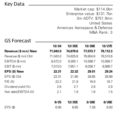 3분기 조정 EPS는 6.95달러로 FactSet 컨센서스(6.38달러)와 자체 예상치(6.36달러)를 상회함. 매출은 컨센서스와 일치함. 조정 부문 EBIT는 Space Systems 및 RMS 부문의 호조에 힘입어 컨센서스보다 4%, 자체 모델보다 2% 높은 수치를 기록함.