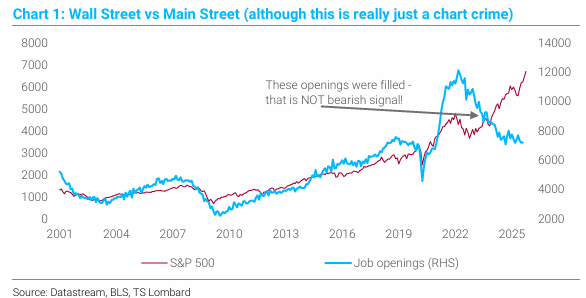 Chart 1: Wall Street vs Main Street (although this is really just a chart crime)