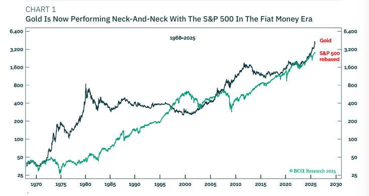 차트 1: Gold Is Now Performing Neck-And-Neck With The S&P 500 In The Fiat Money Era