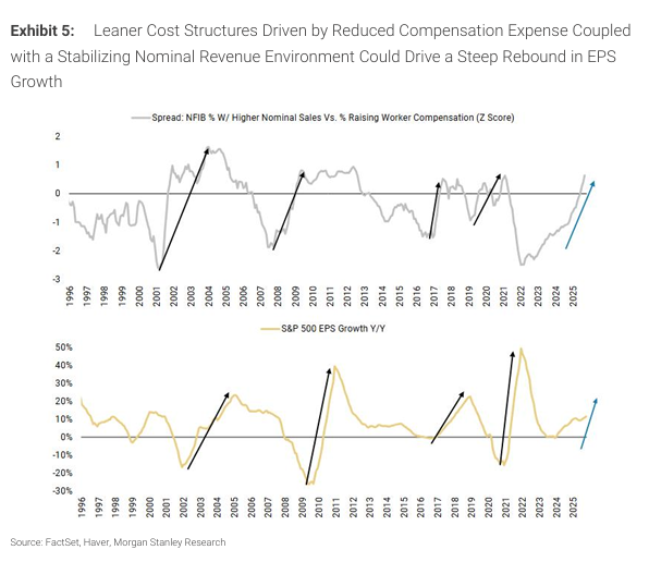일부 전문가들은 이 현상을 AI가 일자리를 파괴하는 동시에 월스트리트와 상위 10%의 부를 증진시키고 있다는 '증거'로 해석하며, 이를 '소름 돋는', '세상에서 가장 중요한 차트'라고 부르지만, 이는 완전히 잘못된 해석임.