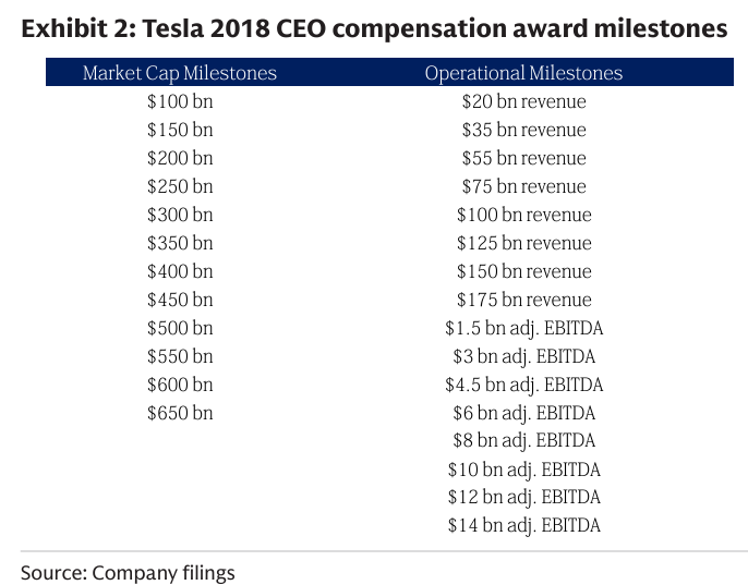 Exhibit 1: Tesla 2025 CEO 보상 어워드 제안 마일스톤 차트 내용 포함되어야 함.