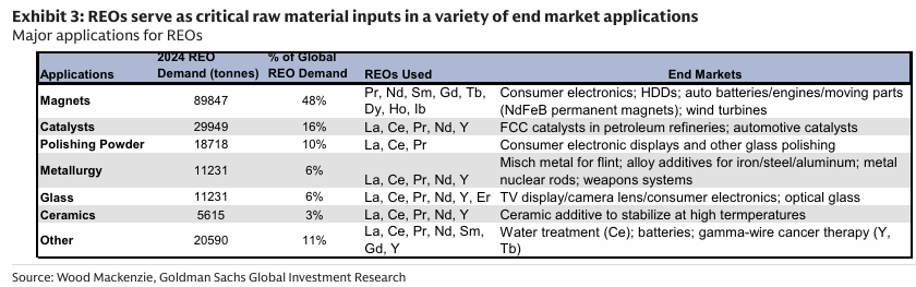 자석(Magnets)이 전 세계 REO 수요의 48%로 가장 큰 비중을 차지함.