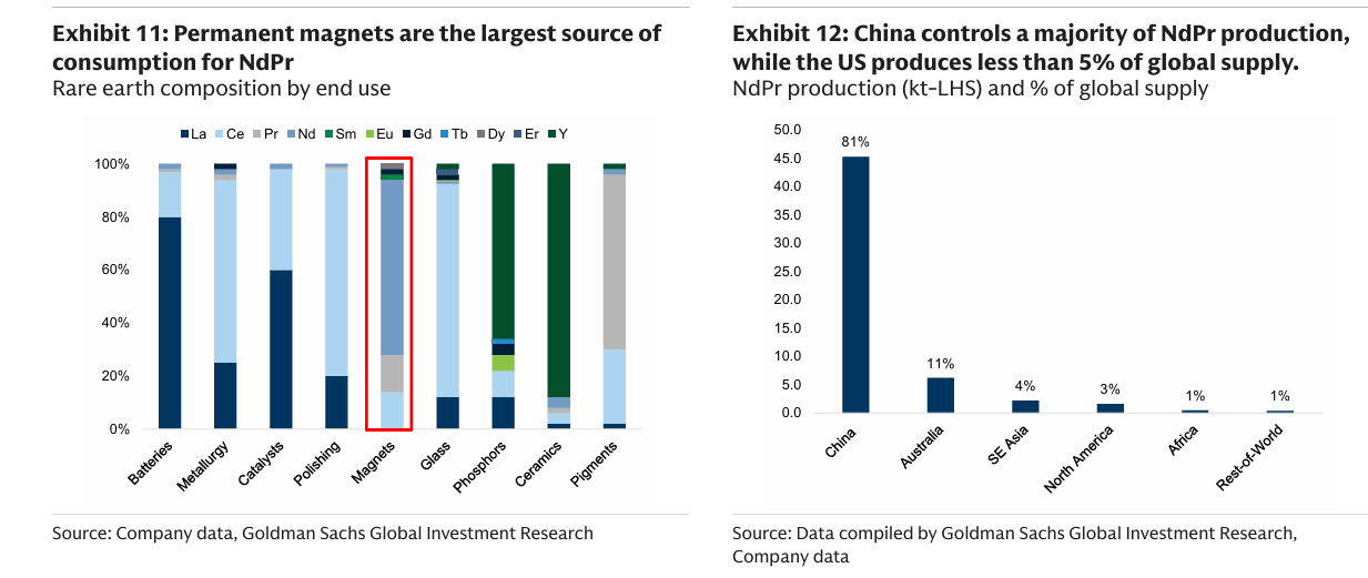 NdPr 산화물은 전자제품, 전기차(EV), 국방 시스템 등에 사용되는 영구자석(NdFeB 자석) 제조의 핵심 부품이며, 이는 미국 제조업의 주요 구성 요소임.