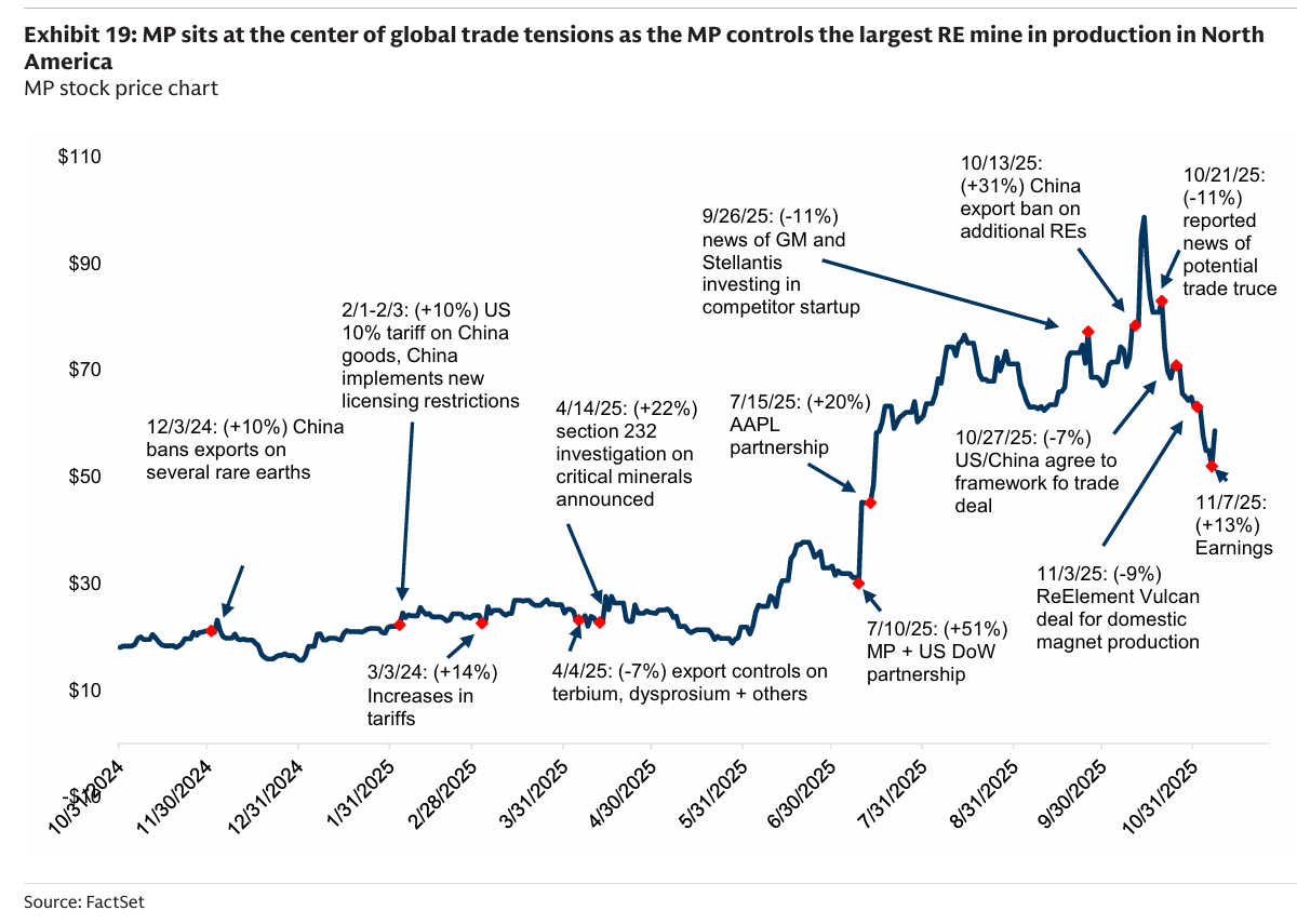 MP는 서반구에서 NdPr의 가장 큰 생산자로, 전기차, 전자제품, 국방 수요 등 미국 경제의 필수 부문에 사용되는 영구자석의 핵심 원료를 공급함.