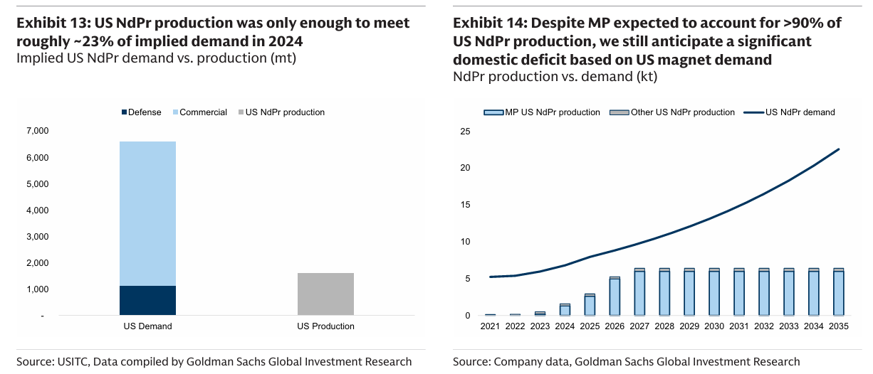 그러나 MP가 NdPr 생산 능력을 6kt로 늘리더라도, 2035년까지 미국 수요의 약 29%만을 충족시킬 것으로 예상되어 여전히 상당한 국내 적자가 예상됨.