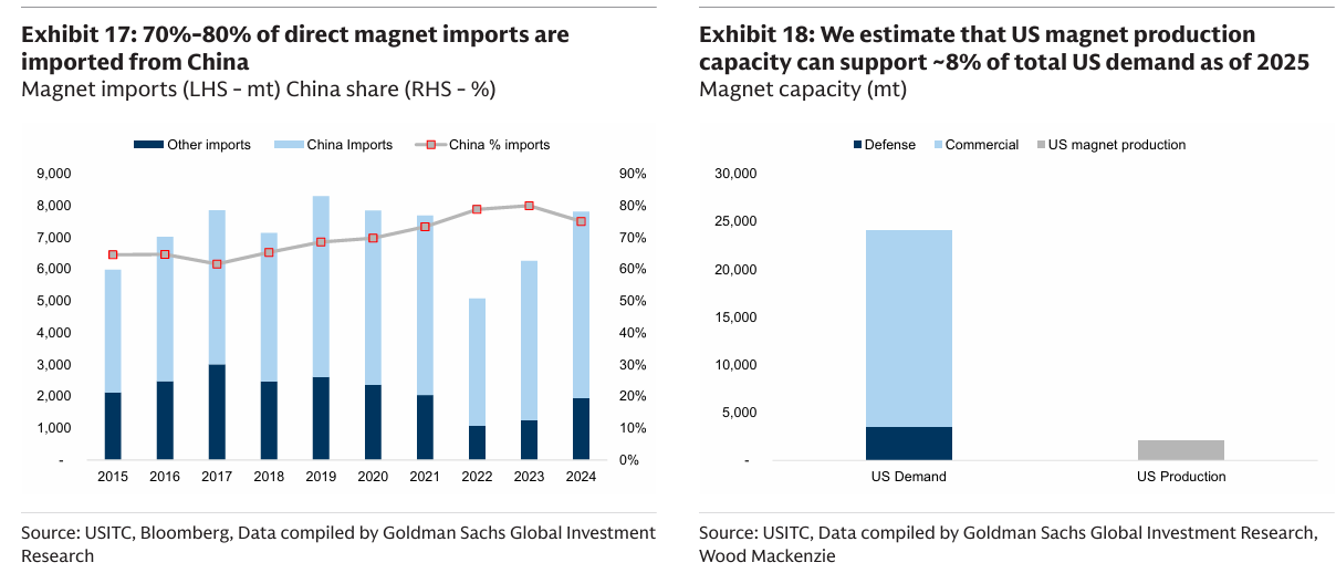 2025년 기준, 미국 자석 생산 능력은 총 미국 수요의 약 8%를 지원할 수 있는 수준으로 추정됨.