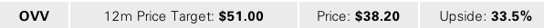 • 11월 17일에 Ovintiv Inc. (OVV) 경영진(CEO 겸 사장 Brendan McCracken 등)과 만찬을 진행한 후, 누비스타(NuVista) 인수, 아나다코(Anadarko) 자산 매각 계획, 자본 배분 전망에 대한 추가적인 세부 정보를 얻었음.