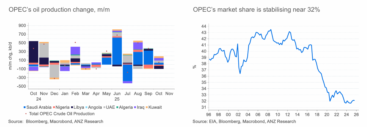 OPEC+의 생산량 증가는 목표치인 137kb/d 대비 50kb/d에 그쳐 4분기 시장 잉여분(surplus)이 감소됨.