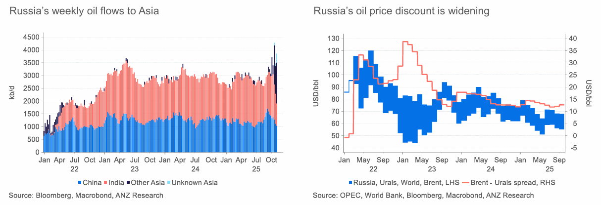 러시아산 원유 흐름은 특히 미확인된 아시아 시장으로의 대규모 가격 할인 덕분에 증가해왔음.