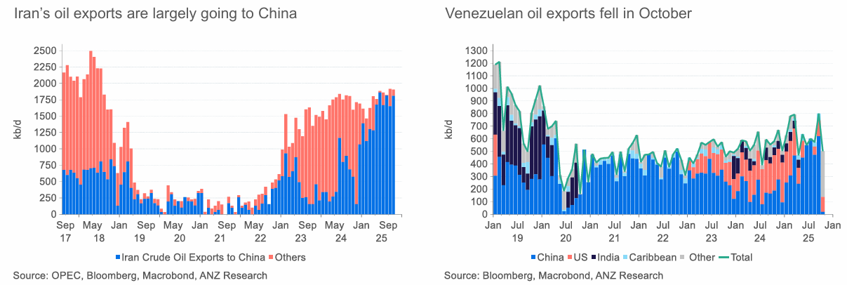 중국은 이란과 베네수엘라 원유의 주요 목적지임