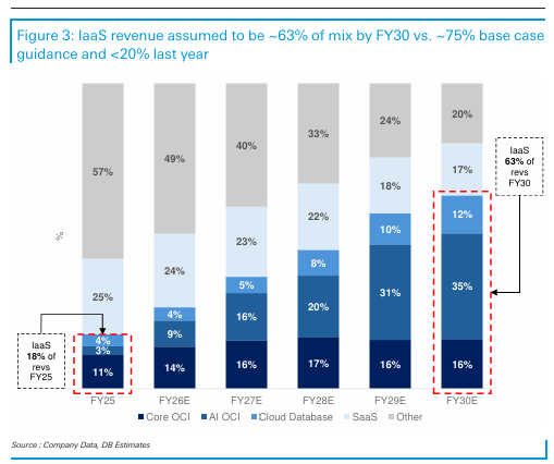 전체 매출에서 IaaS(인프라 서비스)가 차지하는 비중 또한 FY30 기준, 가이던스인 74%보다 낮은 63% 수준이 될 것으로 예상됨.