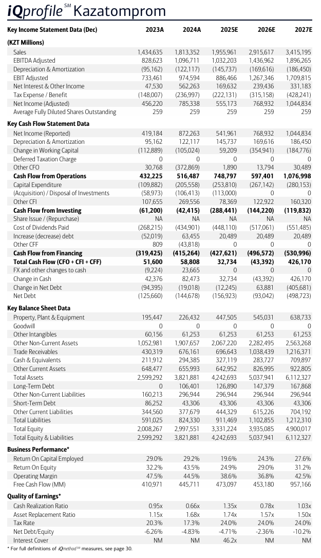 조정 EBITDA는 2024년 1.1조 텡게 수준에서 2027년 1.9조 텡게로 증가 예상.