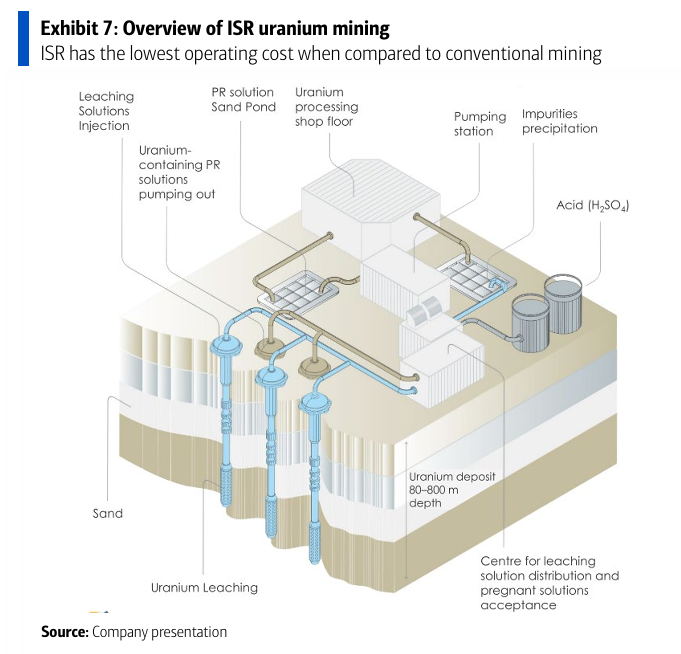 모든 생산에 ISR(제자리 침출) 공법을 사용함(전 세계 ISR 비중은 54%).
