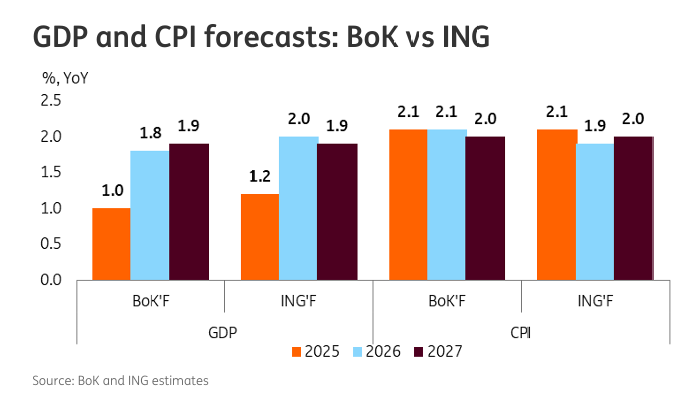 • [그래프: GDP and CPI forecasts: BoK vs ING]