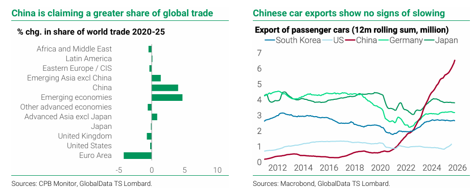 ING의 기본 전망은 2026년 대외 수요가 소폭 완화될 것이라는 것임. 그러나 주요 위험 중 하나는 예상보다 심각한 대외 수요 전망 악화임. 지난 2년간 중국의 수출은 상대적으로 선전해왔으며, 산업 활동도 이러한 대외 수요를 충족시키기 위해 견조한 성장을 보였음.