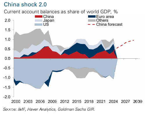 중국 쇼크 2.0: 수출 주도 성장에 대한 중국의 새로운 집중은 중국 경제에 긍정적으로 작용하고 2029년까지 경상수지 흑자를 전 세계 GDP의 1%로 증가시켜, 무역 파트너 국가의 제조업 생산과 고용을 감소시킬 가능성이 있음.