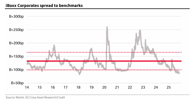 급격한 경기 둔화나 침체가 없는 한, 현재로서는 신용 지표에 지속적인 피해를 줄 수 있는 것은 없어 보였음. 지난 몇 년간 신용 시장은 미국 관세 발표, 프랑스 정부 문제, 국채 변동성(올해는 하락했음), 미국 정부 셧다운, 지정학적 긴장 및 전쟁과 같은 여러 문제들을 능숙하게 헤쳐나왔음.