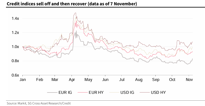 Credit indices sell off and then recover (data as of 7 November) (신용 지표 매도 후 회복)