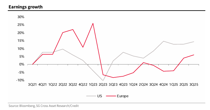 3분기 실적 발표 시즌이 끝나지 않았지만, Stoxx Europe 600 지수 기업의 약 80% , S&P 500 지수 기업의 거의 90% 가 실적을 발표했음.