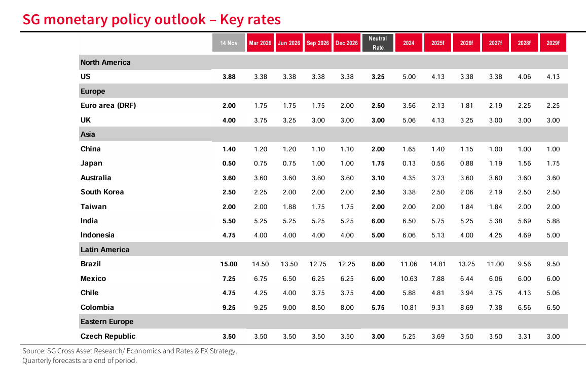 2025년 12월에 한 번, 2026년에 세 번의 추가 인하(총 25bp)를 예상했으며, 시장이 이를 가격에 반영함에 따라 GBP가 하락할 기회가 생기고, 동시에 CAD가 최근의 약세에서 벗어날 수 있을 것임.