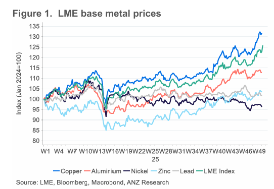 대부분의 기초 금속은 내년에 잘 지지될 가능성이 높음. 미국의 정제 구리 관세에 대한 불확실성은 정제 구리 물량의 미국 유입을 지속적으로 증가시켜 미국 외 시장을 타이트하게 만들 것으로 보았음. 이는 지속적으로 타이트한 구리 정광 시장과도 일치함. 알루미늄의 경우, 시장은 중국이 생산 상한선에 근접하는 상황과 다른 지역의 여러 생산자들이 높은 전력 가격으로 인해 공장 폐쇄를 고려하는 것에 초점을 맞추고 있음.