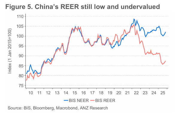 그림 5. 여전히 낮고 저평가된 중국의 REER
