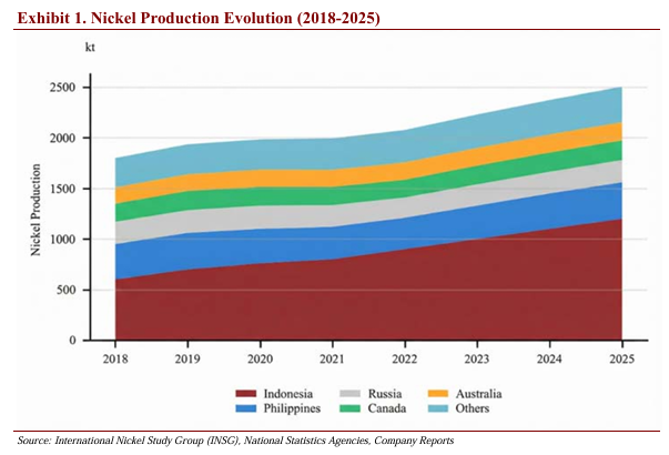 Exhibit 1. 니켈 생산 진화 (2018-2025)