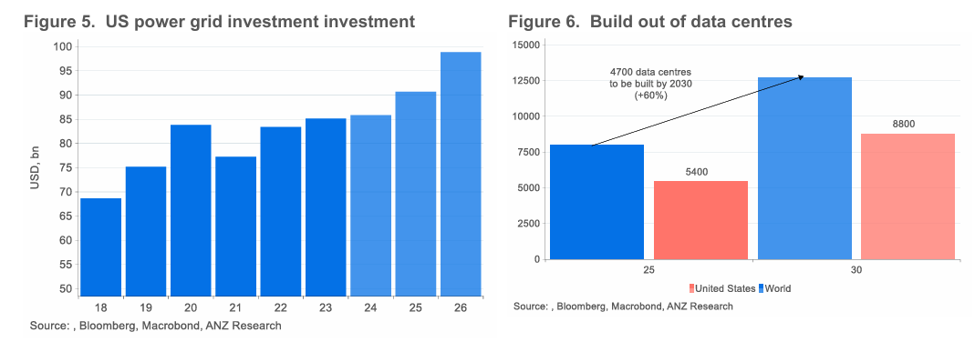 전 세계 전기화가 원자재 수요를 지지. 공장·가전·냉방·데이터센터·EV 전력 수요 증가. IEA는 전력 소비 +3.7% 예상, 전체 에너지 수요 증가 속도의 2배 이상.