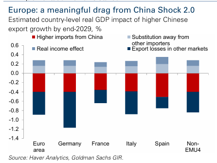 2029년 말까지 중국 수출 증가가 각국 실질 GDP에 미치는 영향 (%)