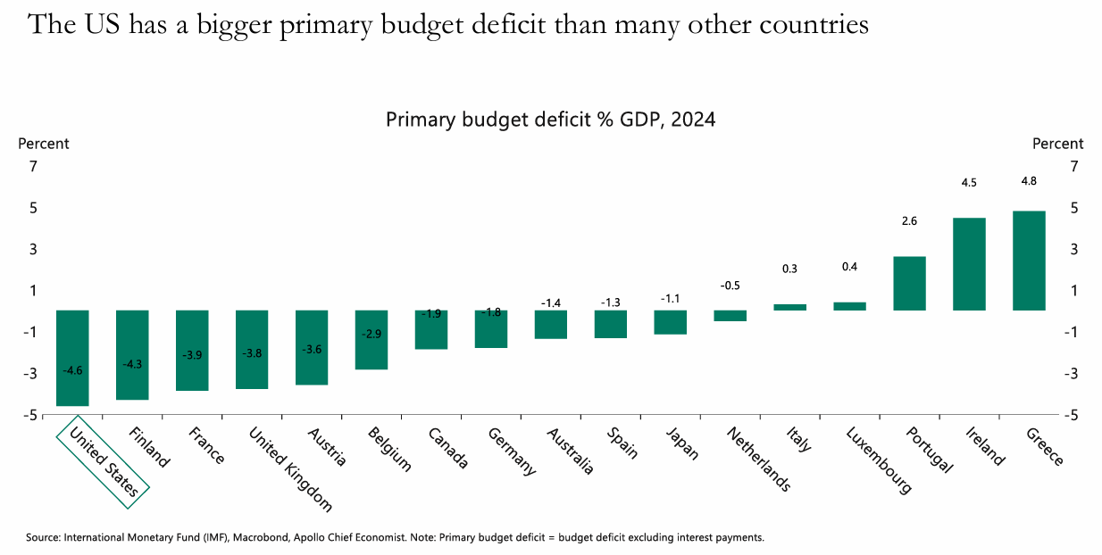 • 미국은 많은 다른 국가들보다 더 큰 기초재정수지 적자를 가지고 있음