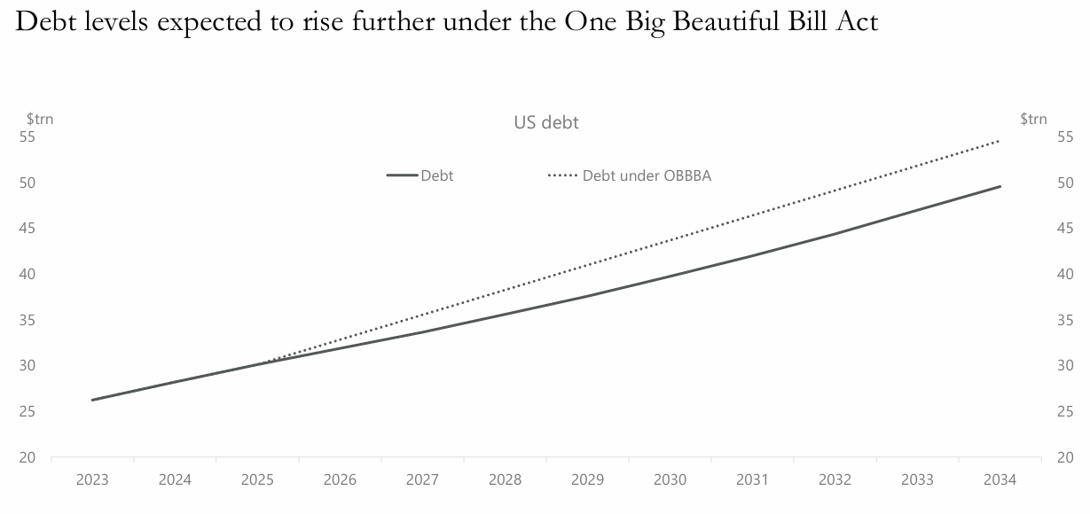• One Big Beautiful Bill Act 하에서 부채 수준이 추가 상승할 것으로 예상됨