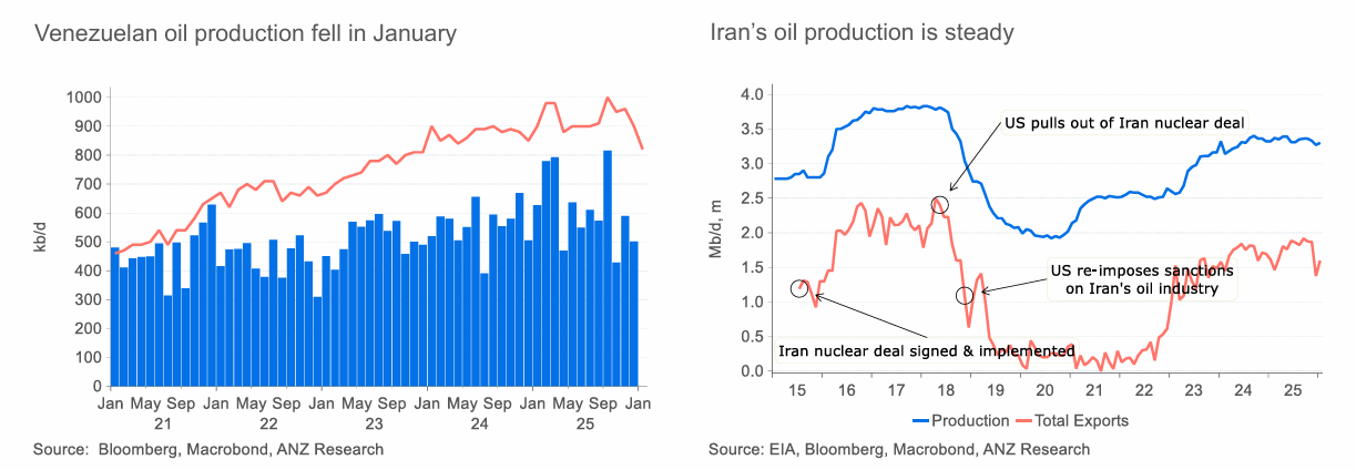 베네수엘라 원유 생산은 1월에 감소. 이란 원유 생산은 안정적. 아직까지 생산 차질은 중대하지 않음.
