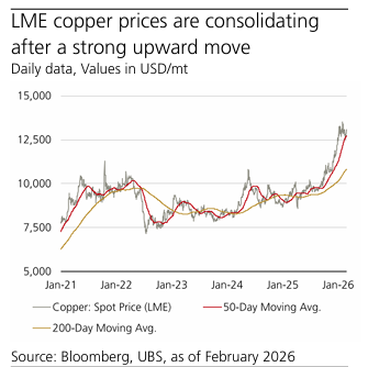 • 최근 구리 가격의 상승 모멘텀이 일시적으로 멈췄으며, 2026년까지 높은 가격 수준이 지속될 것으로 예상됨. 중국 춘절 전후의 계절적 활동 둔화도 가격 조정 국면에 기여하고 있음.