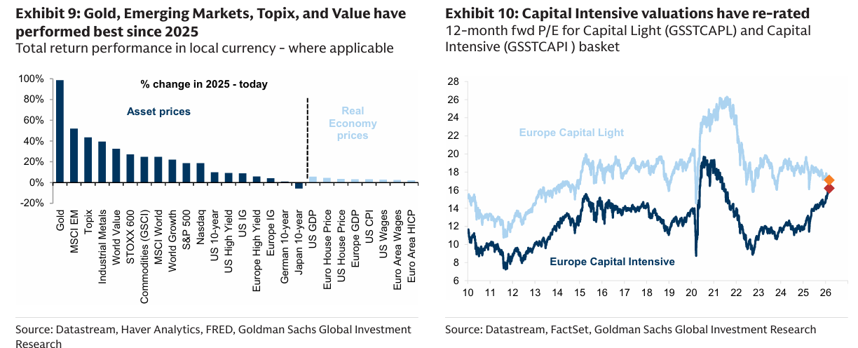 Exhibit 9: 2025년 이후 금, 신흥시장, 일본(Topix), 가치주가 가장 좋은 성과를 기록했다