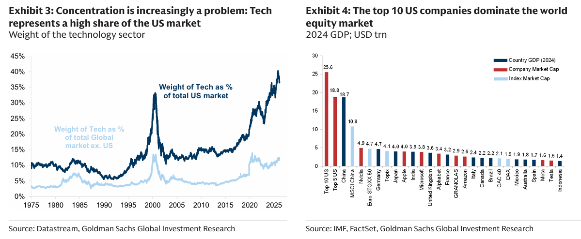 Exhibit 3: 집중도는 점점 더 큰 문제가 되고 있다: 기술 섹터가 미국 시장에서 차지하는 비중이 높다