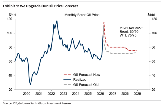 당사 상품 애널리스트들은 다음 두 가지를 반영해 원유와 천연가스 가격 전망을 상향 조정했다. 첫째, 호르무즈 해협 통행량이 정상의 5% 수준으로 6주간 감소한 뒤 1개월에 걸쳐 점진적으로 회복된다는 새로운 기본 시나리오를 반영했다. 둘째, 생산과 유휴 생산능력 리스크에 대응한 구조적으로 더 높은 전략 비축을 반영했다. 우리는 이제 브렌트유 가격이 3월 평균 배럴당 105달러, 4월 115달러를 기록한 뒤 점진적으로 2026년 4분기에는 80달러로 낮아지고 2027년에도 그 수준을 유지할 것으로 본다(기존 전망은 71달러). 천연가스의 경우 JKM(일본·한국 마커, 북아시아 현물 LNG의 벤치마크 가격)에 대한 2026년 2~4분기 분기별 전망을 26.90/16.35/14.65달러/mmBtu로 제시한다. 브렌트유는 이제 2026년 남은 기간 동안 기존 전망보다 16% 높을 것으로 예상되며(두바이-브렌트 스프레드를 포함한 아시아 기준으로는 +30%), JKM 천연가스는 18% 높다. 이 전망의 리스크는 양방향이지만 상방으로 더 치우쳐 있으며, 당사 팀은 분쟁 장기화와 지속적인 생산 손실을 반영한 악화 시나리오와 심각한 악화 시나리오도 제시하고 있다. 다만, 트럼프 대통령이 3월 23일 이란 발전소에 대한 공격을 연기한다고 발표한 사례에서 보듯이, 중동 분쟁이 완화되면 에너지 가격은 급락할 수 있다.