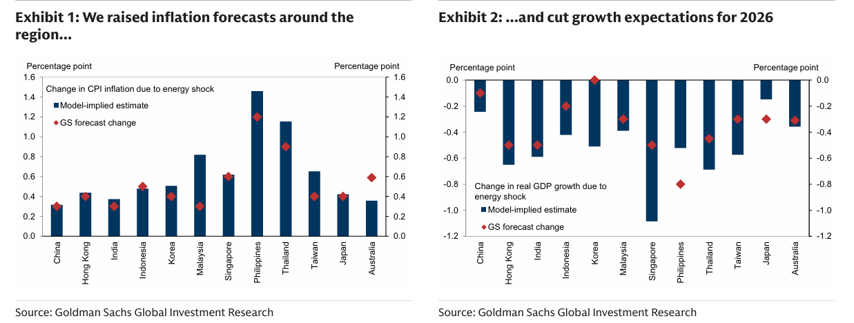 에너지 가격이 더 오래 높은 수준을 유지하면 GDP 성장률 전망은 더 약해진다. 당사 상품 애널리스트들은 호르무즈 해협 통행 흐름의 차질이 더 오래 지속되고 전략적 비축이 이루어질 것이라는 이유로 유가와 가스 가격 전망을 상향 조정했다. 이에 따라 당사 이코노미스트들은 많은 아시아 국가들의 전망을 수정했고, 지역 GDP 성장률을 10bp 낮춰 4.6%로, 물가상승률은 30bp 높여 1.9%로 조정했으며, 지역 내 편차는 크다.