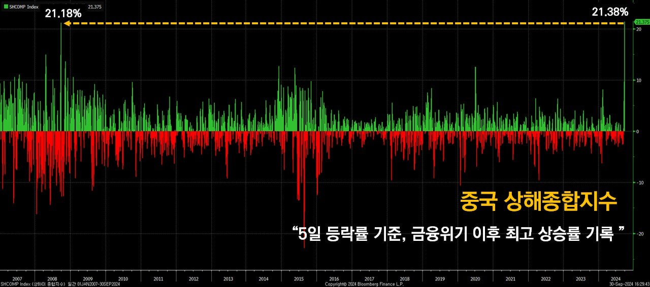 이미 아실 분들은 잘 알고 계시겠지만 중국 주식이 급등하고 있습니다. 솔직히 저도 놀랐습니다. 아니 주가 지수가 이렇게 급등하는 게 말이 되나 싶을 정도로 정말 급등하고 있습니다.