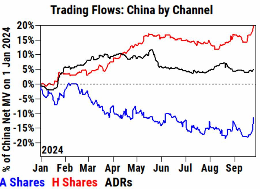 왜 올렀는지에 대해서는 이미 이전 위안화 관련 포스팅에서도 다뤘습니다. 인민은행이 꽤나 강한 확장적 통화정책 패키지를 들고 왔습니다. 다만 해당 포스팅에서도 언급했듯, 중국의 통화정책 효과는 지금 꽤나 약해져 있는 상황입니다. 인민은행은 유동성을 공급하고 있으나, 시중에 유동성은 잘 돌고 있지 않은, 게다가 은행들의 예대마진까지 박살 난 상황이라 대출도 잘 안 나가고 있는 것이죠. 그럼에도 시장은 급등하고 있습니다. 왜 그런 것일까요?