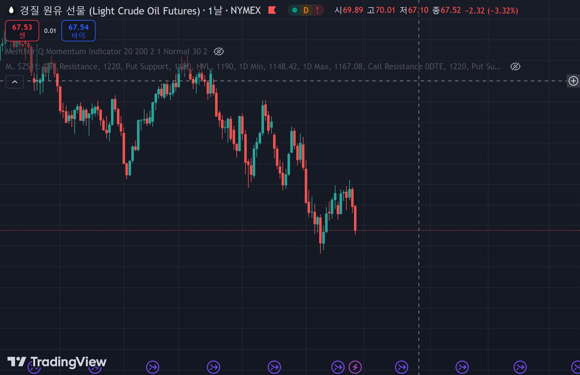 를 바탕으로 아직 충분히 더 이익을 볼 수 있겠다고 판단했고 그래서 더 가지고 갔습니다. 하지만 시장은 예상과는 달리 하락세를 유지했고 결국 최근 들어 약간의 손실을 보고서 손절했습니다.