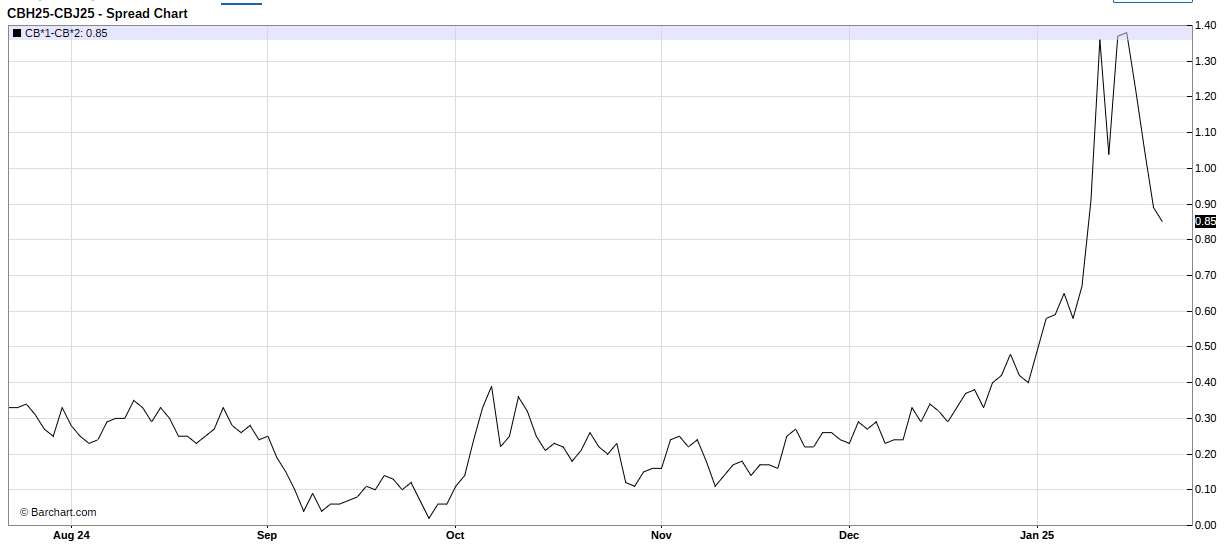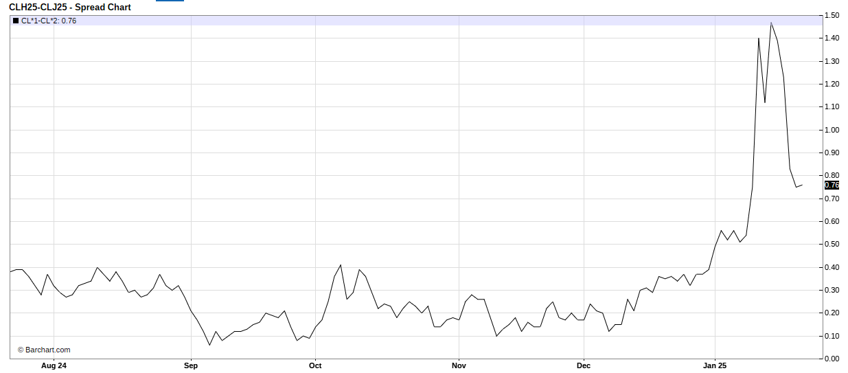 반면 트럼프의 이러한 발언에도 유가는 소폭 하락 마감했으며 WTI유와 브렌트유 모두 타임 스프레드가 하락함. 즉, 백워데이션 정도가 약해졌다는 의미.