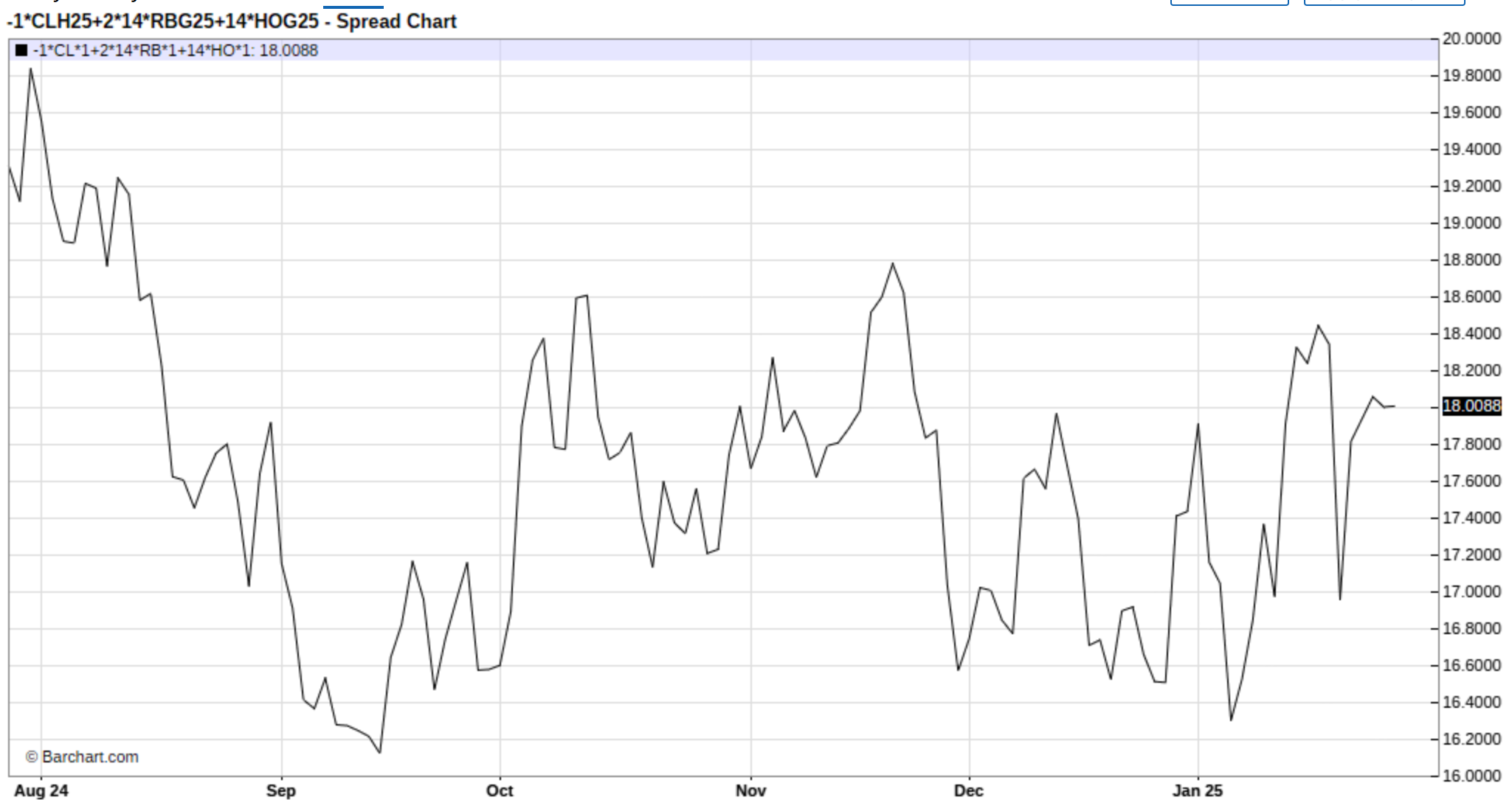 선물 가격을 통해 도출된 3-2-1 크랙 스프레드는 약한 흐름을 보이고 있음 (강한 타임 스프레드에 비해).