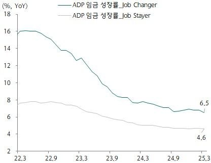 ADP 이직자와 재직자의 임금 성장률, 출처: 하나증권