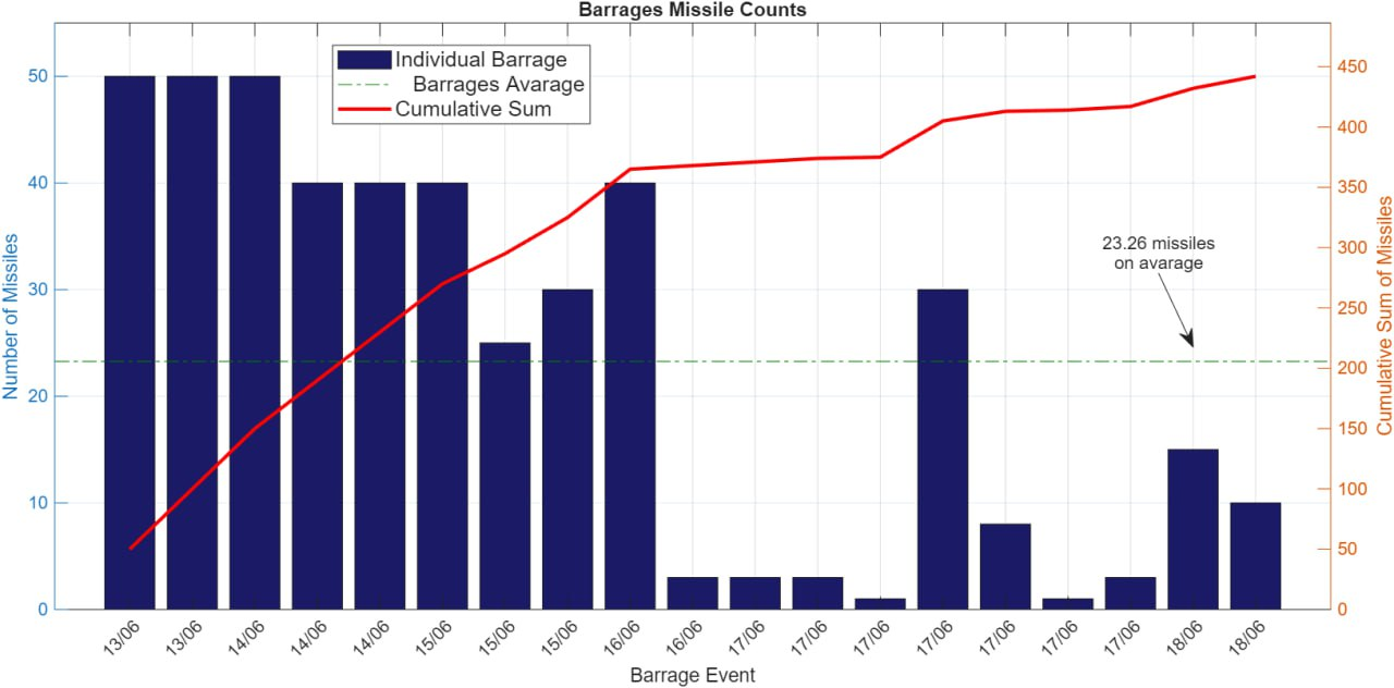 그래프 설명: 이란의 미사일 발사 추이 (출처: OSINT, @news_of_nutcracker)