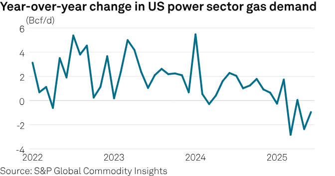 그래프 설명: 미국 전력용 가스 수요 전년동월 대비 증감률(YoY) (출처: S&P Global Commodity Insights)