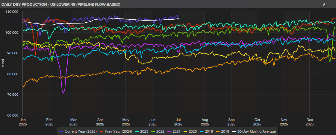 생산은 106.5~107bcf/d 수준으로 높은 수준 유지