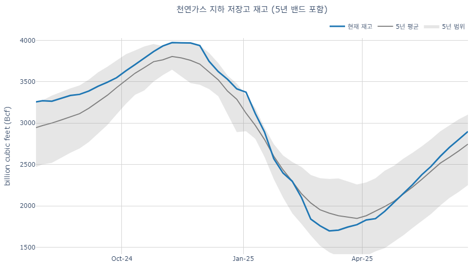 그래프 설명: 미국 천연가스 재고량 추이 (출처: EIA)