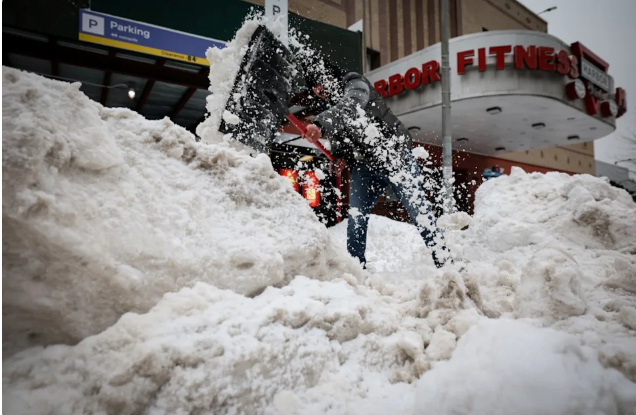 사진 설명: 겨울폭풍 Fern 속에서 주차장 입구의 눈을 제거하고 있는 사람 (출처: Reuters)