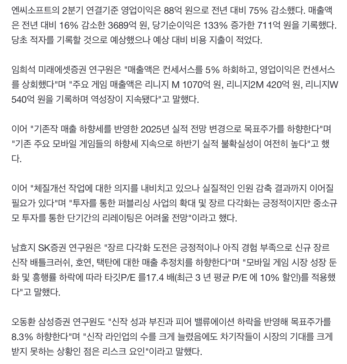 게임 출시 일정: 향후 출시될 게임 라인업과 그에 대한 시장의 기대치를 평가합니다. 대작 게임의 출시가 가까워질수록 주가에 긍정적인 영향을 미칠 수 있습니다.