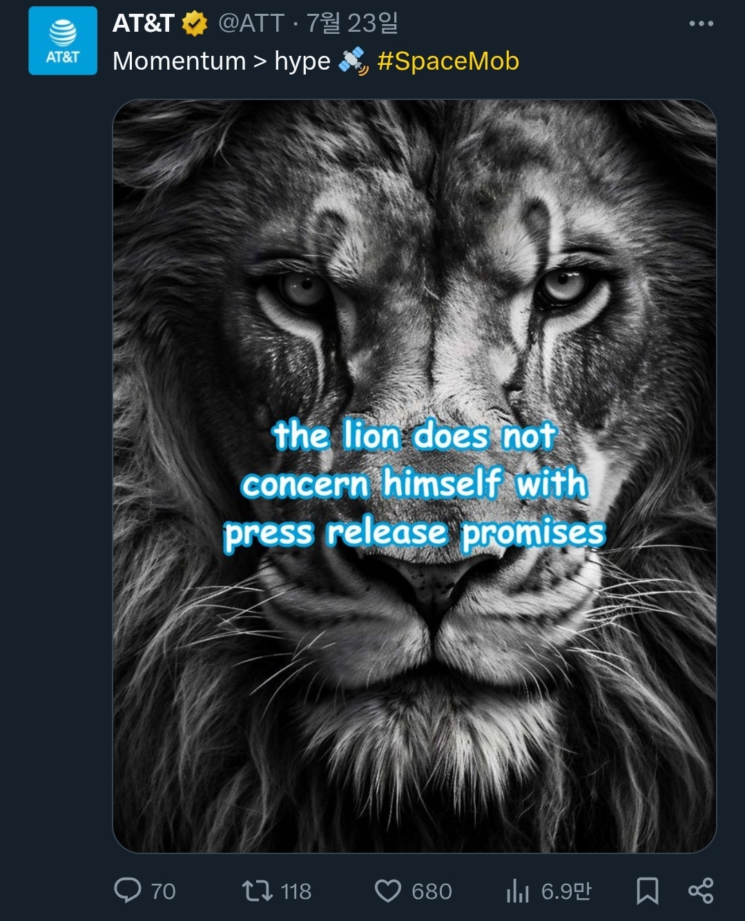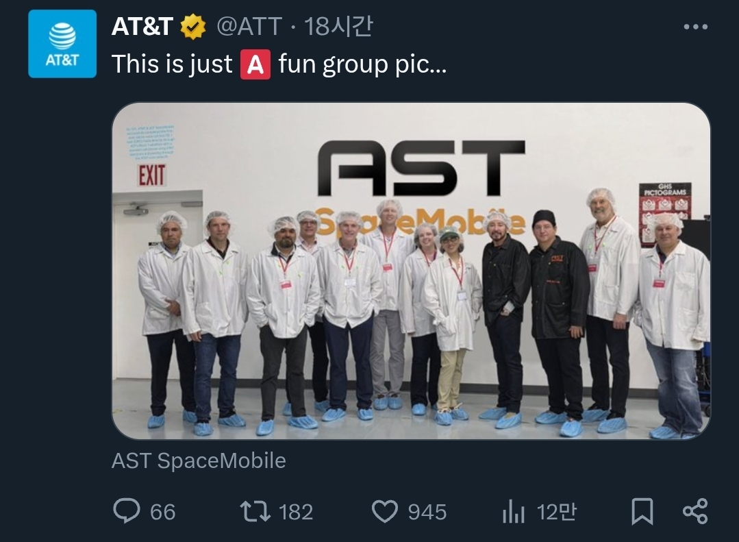 얼핏보면 ASTS의 홍보 X인듯 하지만, 이 모든 것이 AT&T의 X계정 것이다. 그만큼 이 프로젝트에 진심이라는 것이다.